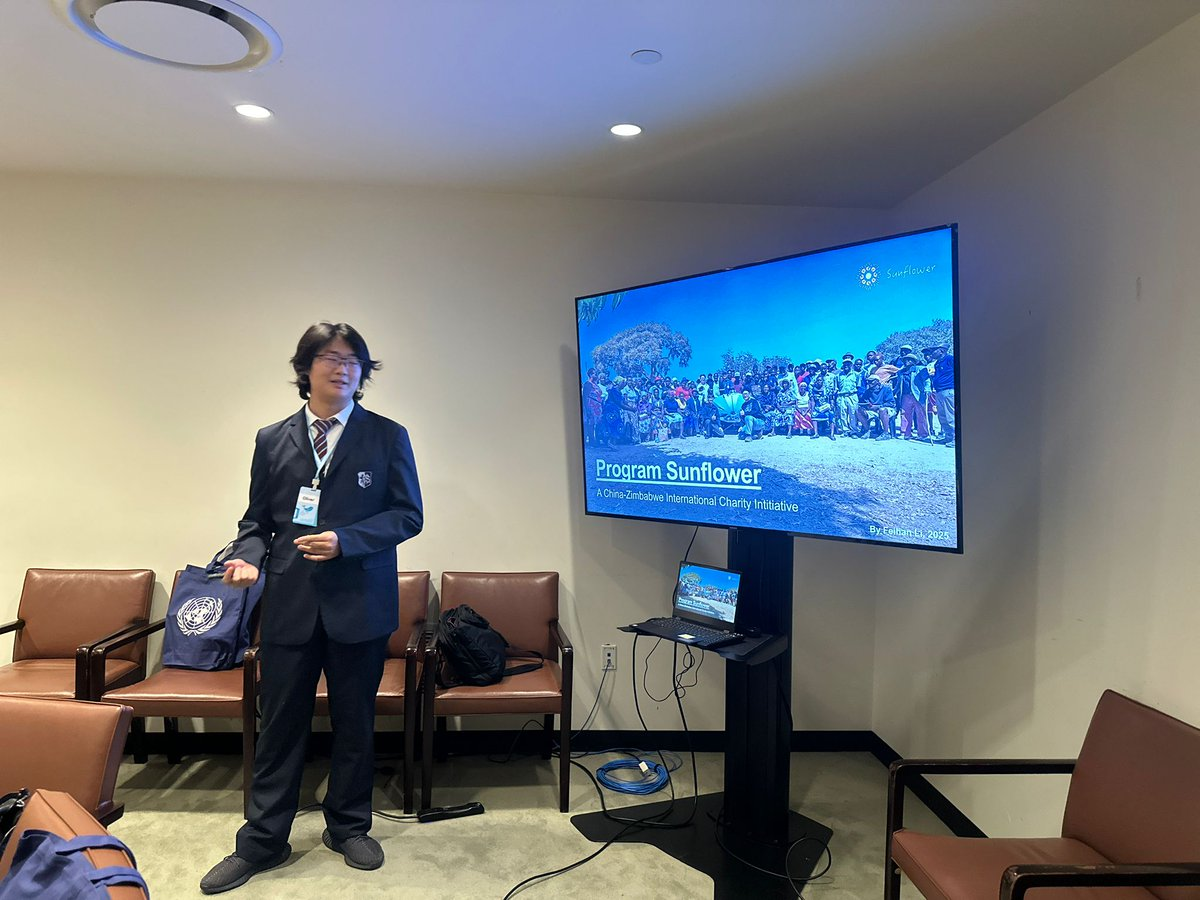 As the president of Program Sunflower, Feihan Li was invited to speak at the event. He introduced the story of Sunflower and shared his experience of presenting sustainable solutions in Zimbabwe, helping raise awareness of global challenges and the importance of youth-driven action.